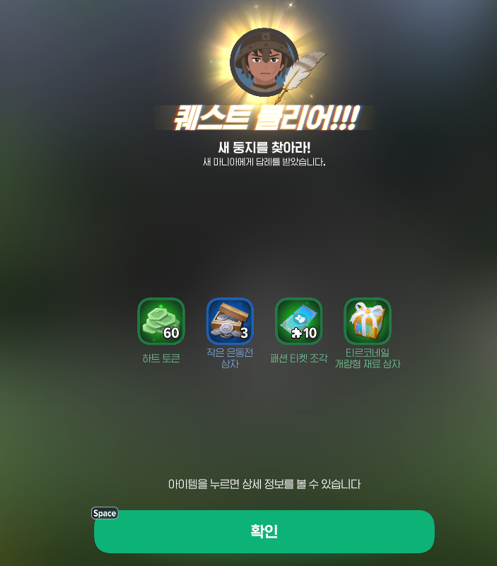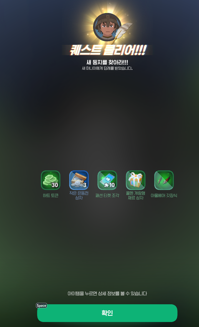 두번째, 세번째 퀘스트 클리어 보상입니다
