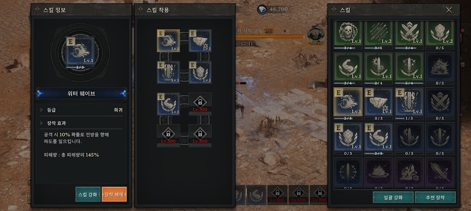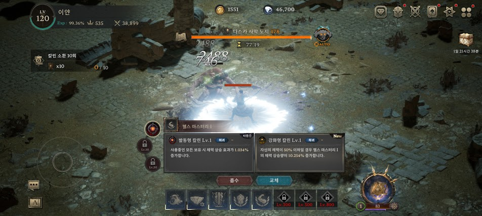 스킬과 유물은 레벨에 따라 장착칸이 더 열리는데요 900레벨정도 찍으면 장착슬롯은 다 열리는거같네요