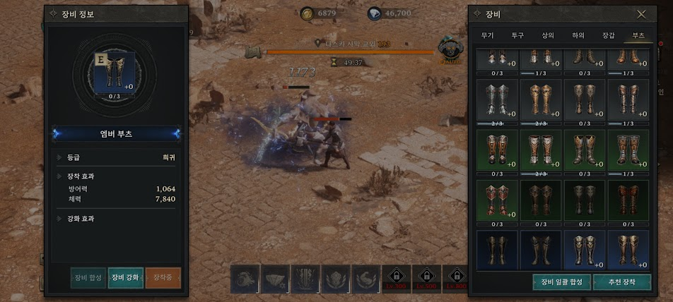뽑기로 뽑은 장비, 스킬, 유물은 장착, 합성, 강화가 가능한데요
